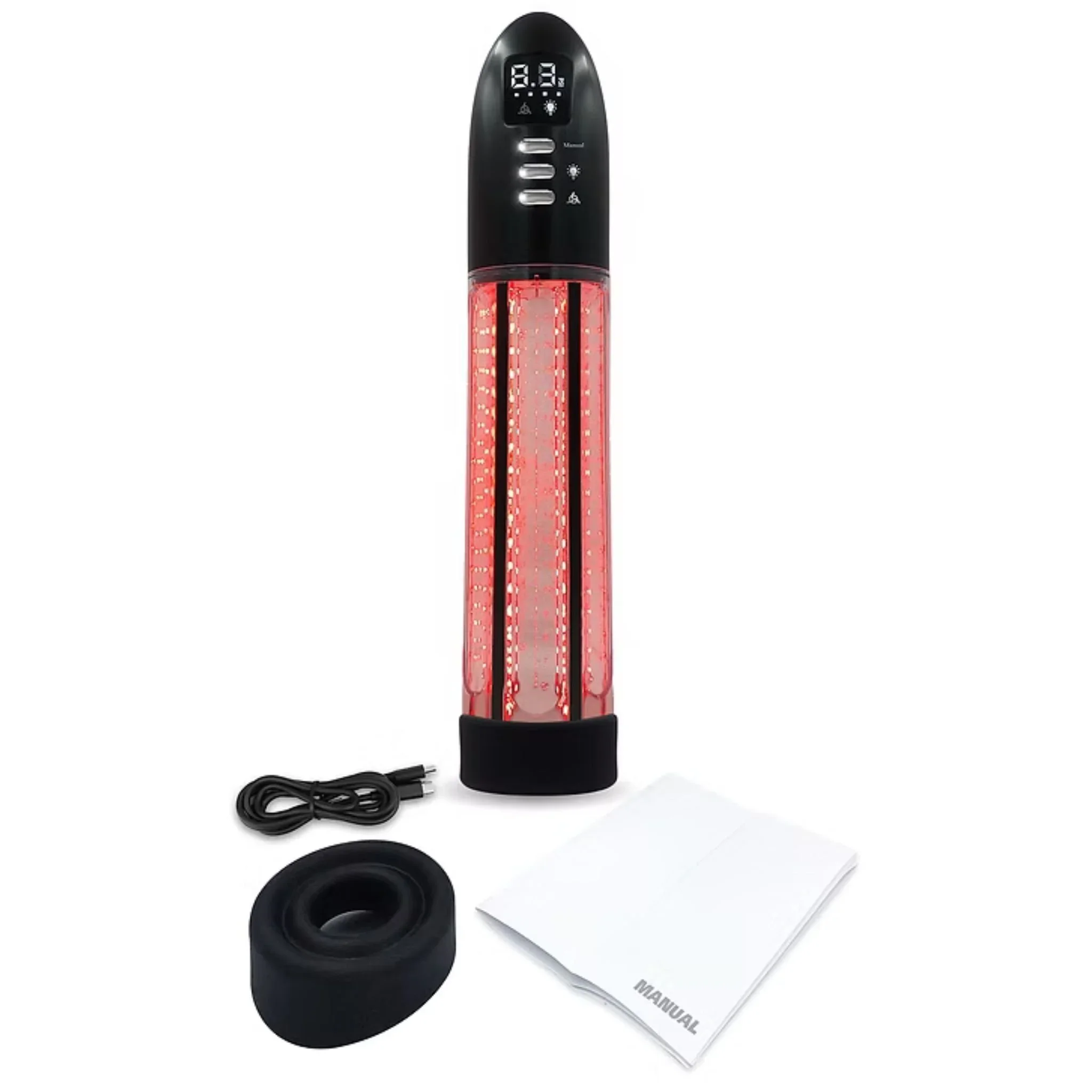 This red-light and vacuum advanced device may support blood flow, tissue repair, and erectile firmness